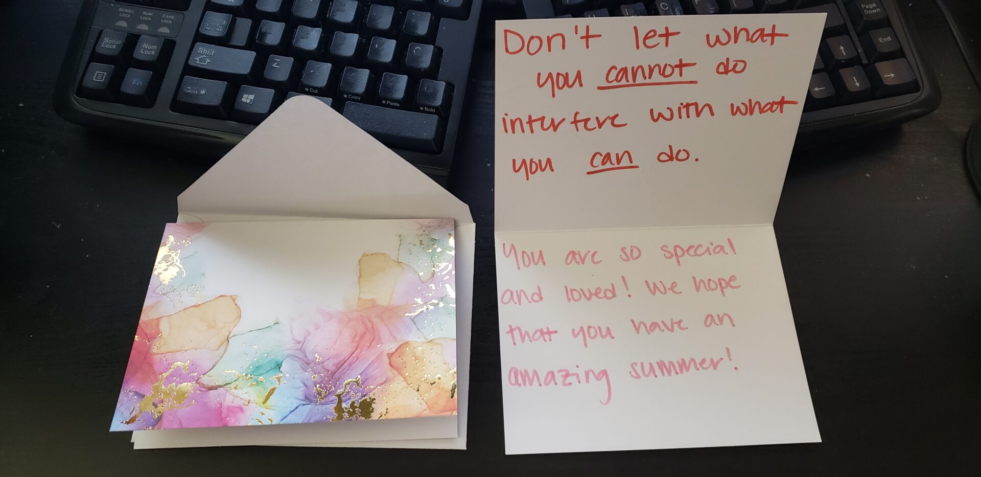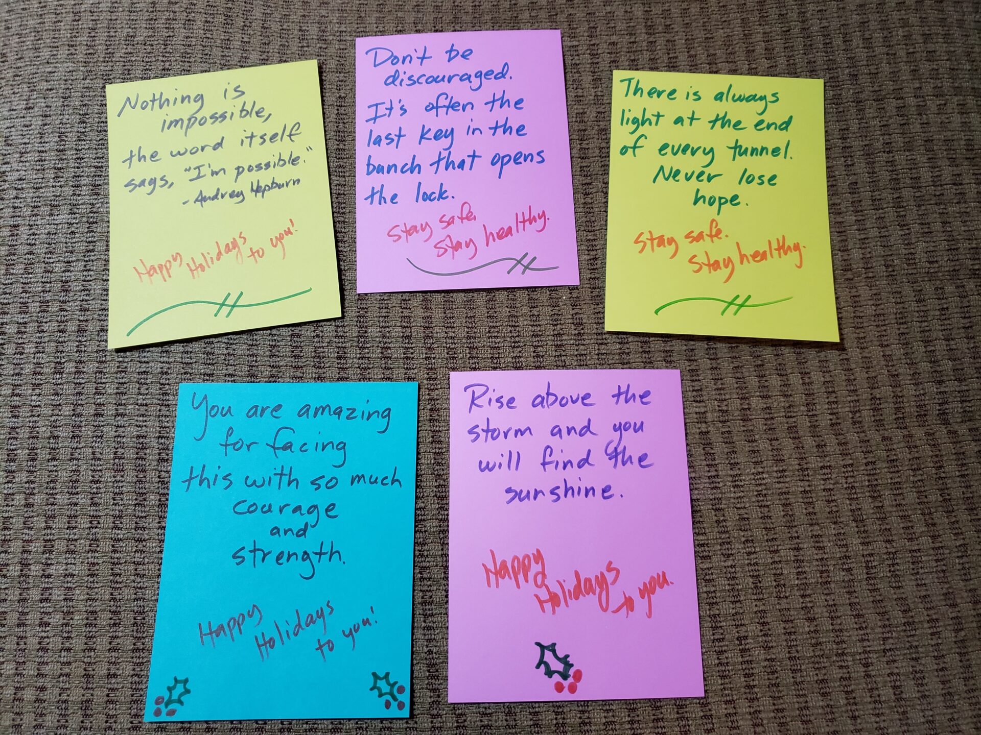 Every year, notecards are our volunteer favorites. They are easy to make and often therapeutic and people love to share positive thoughts with the community and giving hope to the recipients